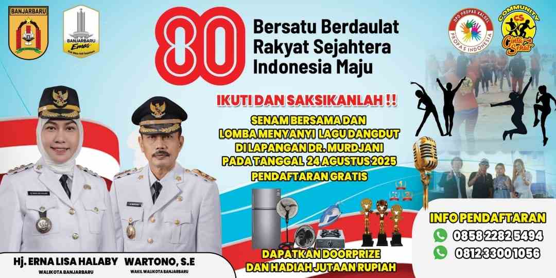 Kata Banua, Banjarbaru – Suasana meriah dipastikan akan mewarnai Lapangan Dr. Murdjani pada Minggu, 24 Agustus 2025, saat Dewan Pimpinan Daerah (DPD) Pro Prabowo Subianto Indonesia (PROPAS) Kalimantan Selatan menggelar Senam Bersama dan Lomba Menyanyi Lagu Dangdut.
