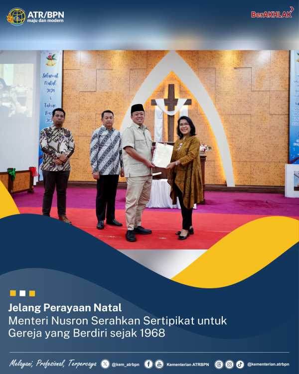 “Menjelang Natal ini, kami dari Kementerian ATR/BPN dapat menyerahkan SHM untuk lembaga keagamaan ini,” ujar Nusron.