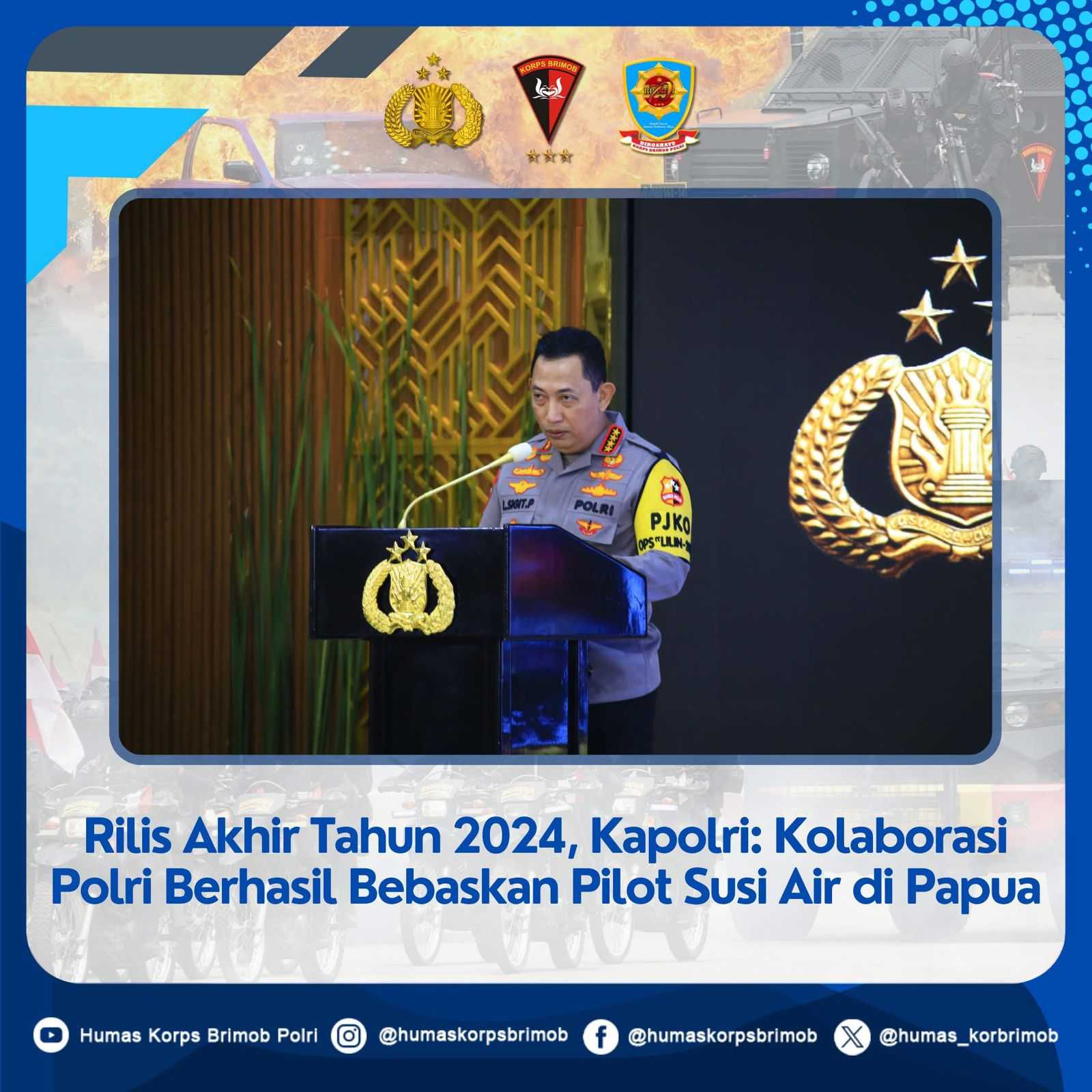 Kata Banua, Jakarta – Kepolisian Negara Republik Indonesia (Polri) menggelar Rilis Akhir Tahun 2024 yang dipimpin langsung oleh Kapolri Jenderal Polisi Listyo Sigit Prabowo, Selasa (31 Desember 2024), di Rupattama Mabes Polri, Jakarta. Dalam kesempatan ini, Kapolri menyampaikan pencapaian penting, termasuk keberhasilan pembebasan Kapten Philip Mark Mehrtens, pilot Susi Air, yang disandera oleh Kelompok Kriminal Bersenjata (KKB) di Papua.