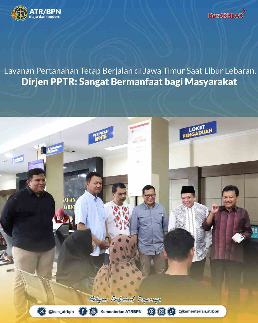 Layanan Pertanahan Tetap Berjalan, Jawa Timur, Saat Libur Lebaran, Dirjen PPTR, Sangat Bermanfaat, Masyarakat,