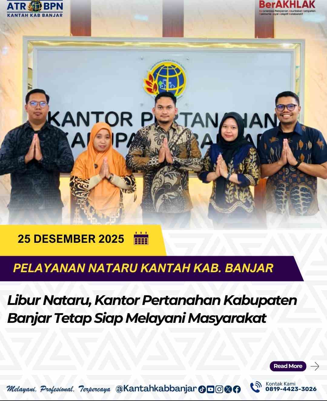 Kata Banua, Martapura – Halo #sobATRBPN Dalam rangka memberikan kemudahan akses layanan pertanahan kepada masyarakat, Kantor Pertanahan Kabupaten Banjar tetap membuka pelayanan pada masa libur Natal dan Tahun Baru (Nataru), Rabu (25/12/2025)