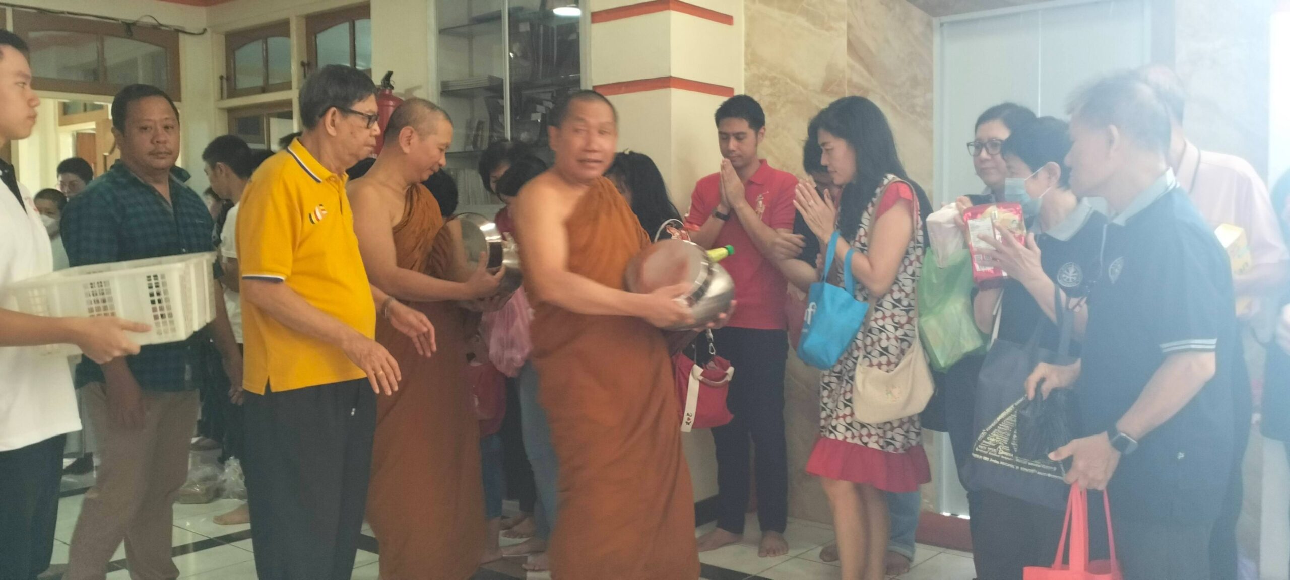 Pada pukul 09.30 WITA, umat mengikuti prosesi Pindapatta di Aula Lantai 2 Vihara. Tradisi ini menjadi momen istimewa untuk berdana makanan kepada para Bhikkhu sebagai praktik kebajikan. Dalam ajaran Buddha, berdana bukan sekadar memberi, melainkan memproses milik yang bersifat sementara menjadi kebajikan yang kekal.