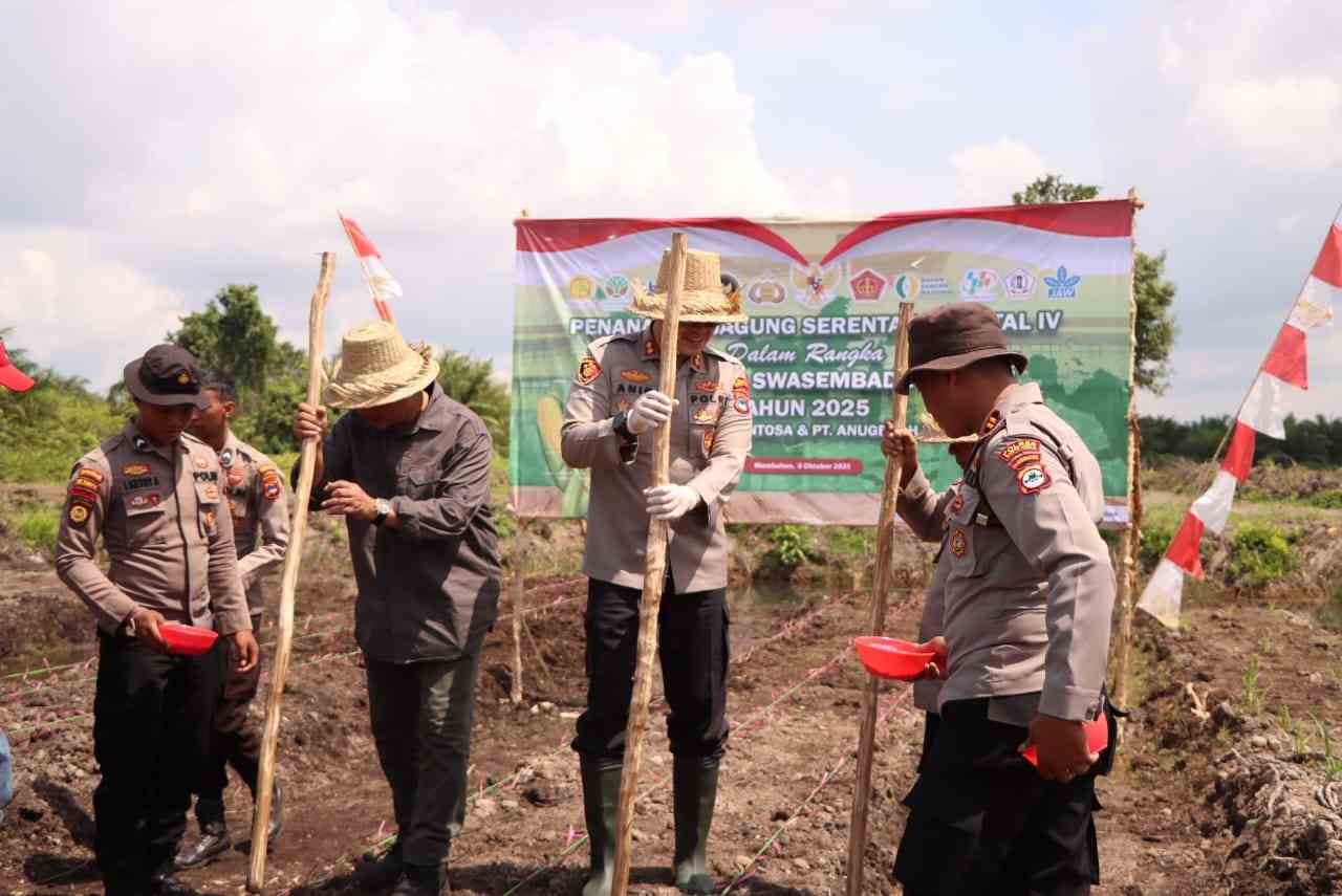 Kata Banua, Barito Kuala – Dalam rangka mendukung Program Swasembada Pangan Tahun 2025, Polres Barito Kuala (Batola) berkolaborasi dengan PT Agri Bumi Sentosa (ABS) dan kelompok tani menggelar kegiatan penanaman jagung serentak pada Rabu (8/10/2025) pukul 11.00 WITA.