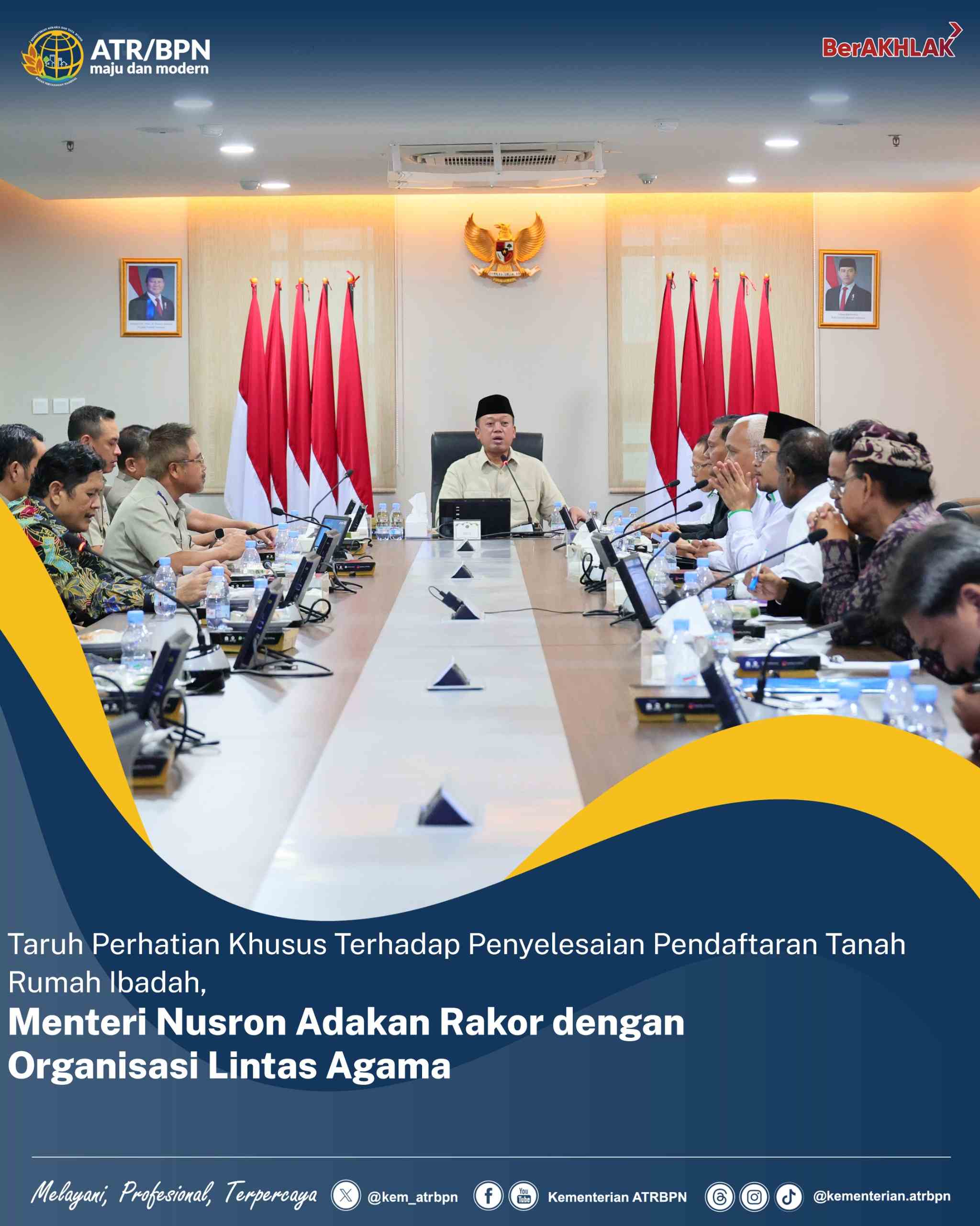 Kata Banua, Jakarta – Menteri Agraria dan Tata Ruang/Kepala Badan Pertanahan Nasional (ATR/BPN), Nusron Wahid melakukan Rapat Koordinasi (Rakor) dengan sejumlah perwakilan dari organisasi lintas agama untuk percepatan pendaftaran tanah rumah ibadah di Indonesia pada Senin (13/01/2025). Hal ini menunjukkan bahwa selain pendaftaran tanah wakaf, Menteri Nusron juga menaruh perhatian khusus terhadap penyelesaian pendaftaran tanah rumah ibadah di tahun 2025.