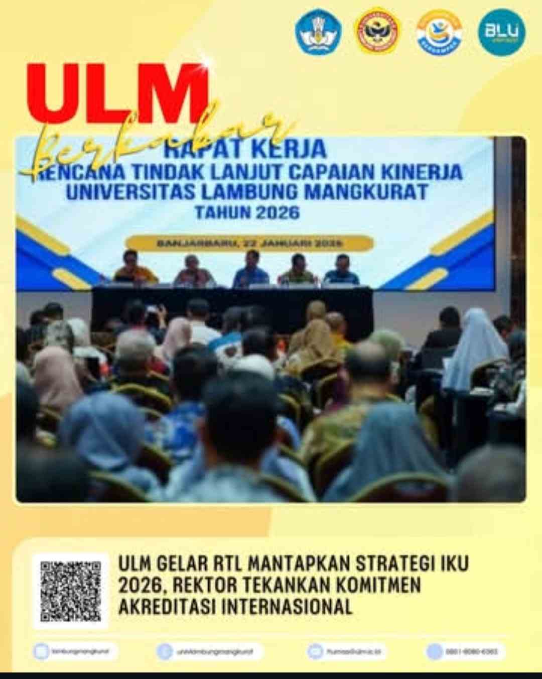 Kata Banua, Banjarbaru – Universitas Lambung Mangkurat (ULM) menggelar Rapat Kerja Rencana Tindak Lanjut (RTL) guna memantapkan strategi pencapaian Indikator Kinerja Utama (IKU) tahun 2026 sebagai bagian dari penguatan kinerja institusi secara berkelanjutan.